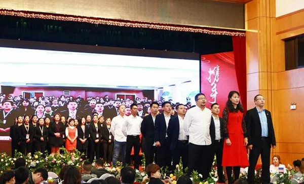 早上九點整,嘉賓們已到達會場簽到就座,隨著主持人激情昂揚的開場,會議拉開帷幕。大會第一項議程:奏唱《義勇軍進行曲》,國旗升起,全體起立奏唱中華人民共和國國歌,會場莊重嚴肅卻讓人內(nèi)心激動,這是我們對國家表達熱愛的方式。隨后,各品牌進行團隊展示,合唱《和桂之歌》,整齊有力的聲音體現(xiàn)了科桂人的精神文化和凝聚力,收獲了一片掌聲。