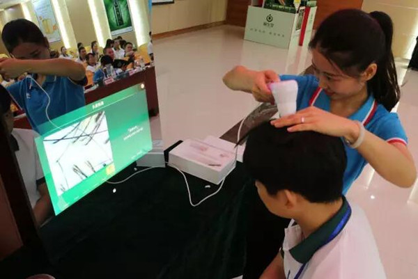 市場(chǎng)部總監(jiān)甘斌在會(huì)上向大家介紹了,源生堂獨(dú)家定制開發(fā)的4.0版本的頭皮智能檢測(cè)儀——“魔鏡”。他表示,“魔鏡的三大保障:魔鏡的智能化、專業(yè)化、多媒體功能給顧客帶來科學(xué)的檢測(cè)”。魔鏡從專業(yè)的角度,系統(tǒng)地將頭皮頭發(fā)的各種問題分類、分析,從整體到局部都能透徹地進(jìn)行評(píng)估,從而有助養(yǎng)發(fā)顧問為顧客訂制最精確的護(hù)理方案。在眾多養(yǎng)發(fā)儀器中,頭皮檢測(cè)儀是最重要的儀器之一,它用來檢測(cè)頭發(fā)問題的根源,讓消費(fèi)者清晰地看到自己頭發(fā)的養(yǎng)護(hù)前和養(yǎng)護(hù)后的對(duì)比照,及時(shí)了解頭皮健康狀況。