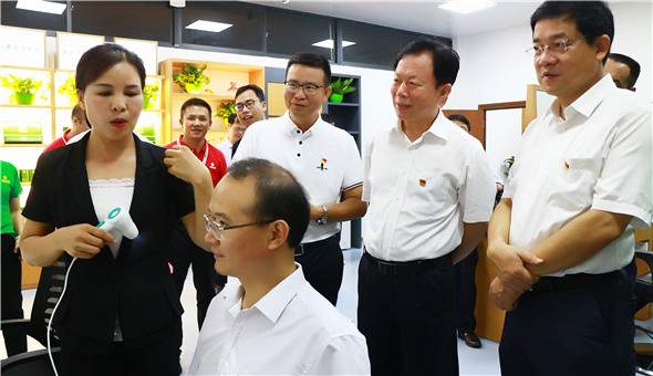 在調(diào)研集團(tuán)公司源生堂生發(fā)、養(yǎng)發(fā)項(xiàng)目時(shí),黃總向徐部長介紹所有的源生堂產(chǎn)品都是公司自主研發(fā),每一款都有專利技術(shù)。徐部長認(rèn)為源生堂生發(fā)養(yǎng)發(fā)屬于大健康產(chǎn)業(yè),更是健康生活的一部分;他指出:面對(duì)不斷變化的經(jīng)濟(jì)發(fā)展形勢,希望和桂集團(tuán)要進(jìn)一步增強(qiáng)發(fā)展信心,增強(qiáng)品牌意識(shí),加大自主創(chuàng)新力度,增強(qiáng)產(chǎn)品的文化深度,提升品牌形象,把企業(yè)做優(yōu)做大做強(qiáng)。