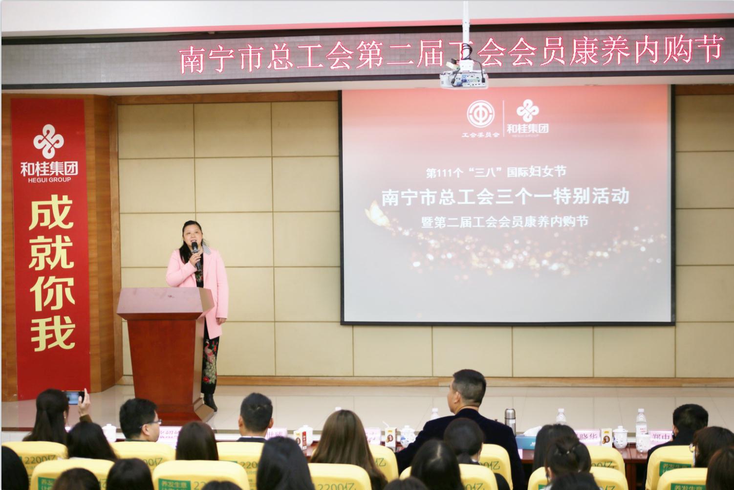 在第111個(gè)“三八”國(guó)際婦女節(jié)到來(lái)之際,為進(jìn)一步激發(fā)全市女職工愛(ài)崗敬業(yè)、銳意進(jìn)取的工作熱情,充分發(fā)揮“半邊天”的作用,3月5日,南寧市總工會(huì)走進(jìn)和桂集團(tuán),開(kāi)展“三個(gè)一”特別活動(dòng),通過(guò)“一場(chǎng)權(quán)益講座”“一場(chǎng)康養(yǎng)講座”“一個(gè)內(nèi)購(gòu)節(jié)”,與南寧市基層工會(huì)的女職工共慶節(jié)日,致敬了不起的綠城巾幗!