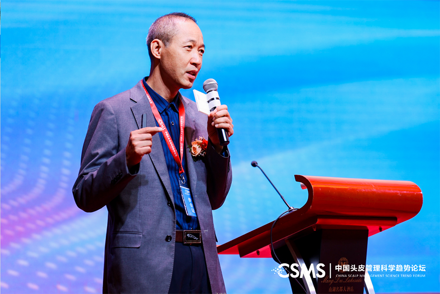 廣西醫(yī)科大學(xué)第一附屬醫(yī)院教授劉慶豐,分享了《頭皮健康管理研究:從局部走向整體,頭面一體化趨勢》的主旨內(nèi)容,結(jié)合目前頭皮健康管理誤區(qū),詳細介紹了頭皮與面部皮膚的關(guān)系,認為衰老從頭皮開始,頭皮和面部皮膚應(yīng)該得到一致性養(yǎng)護,保持年輕態(tài),“頭面一體”是趨勢。