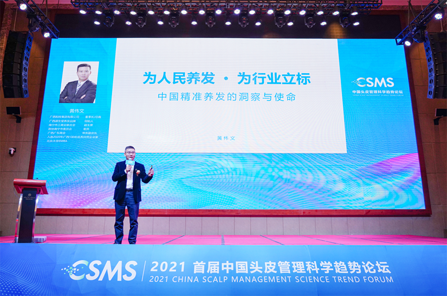 “精準養(yǎng)發(fā)”產(chǎn)業(yè)聯(lián)盟成立儀式,同步啟動。和桂集團董事長、源生堂養(yǎng)發(fā)品牌創(chuàng)始人黃偉文,代表產(chǎn)業(yè)聯(lián)盟發(fā)起單位作《為人民養(yǎng)發(fā),為行業(yè)立標》的主題演講,分享了和桂源生堂的發(fā)展歷程、成功經(jīng)驗,以及科研成果與未來發(fā)展規(guī)劃。