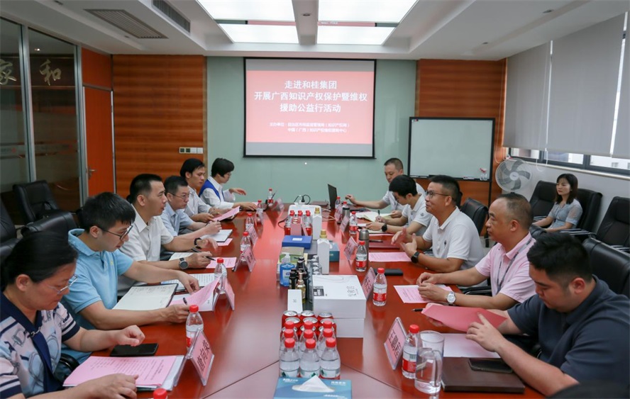 8月12日,自治區(qū)市場監(jiān)督管理局知識產(chǎn)權保護處處長梁濤一行蒞臨和桂集團開展調(diào)研。南寧市市場監(jiān)督管理局副局長謝義平、自治區(qū)市場監(jiān)督管理局知識產(chǎn)權保護處一級主任科員張文軍、中國(廣西)知識產(chǎn)權維權援助中心維權援助部部長謝玲玲攜知識產(chǎn)權專家組陪同調(diào)研。專家組重點了解企業(yè)發(fā)展現(xiàn)狀以及相關商標專利等知識產(chǎn)權情況。和桂集團董事長黃偉文攜集團高管熱情接待。