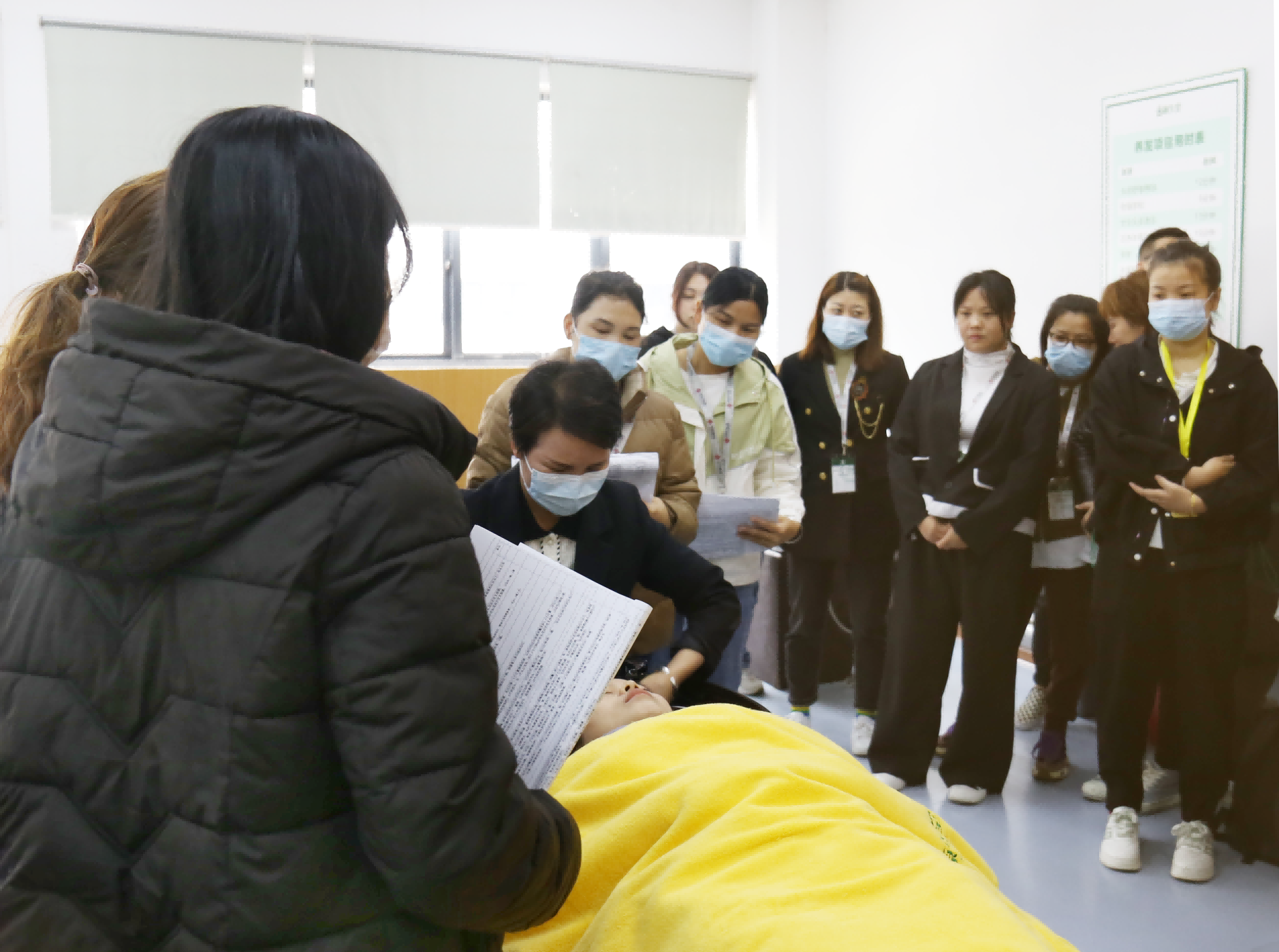 在源生堂商學院,體驗體察團現(xiàn)場觀摩了新學員手法培訓課程,培訓老師親自上陣示范手法操作,學員們認真專注,并不時提問,學習氛圍十分濃厚。