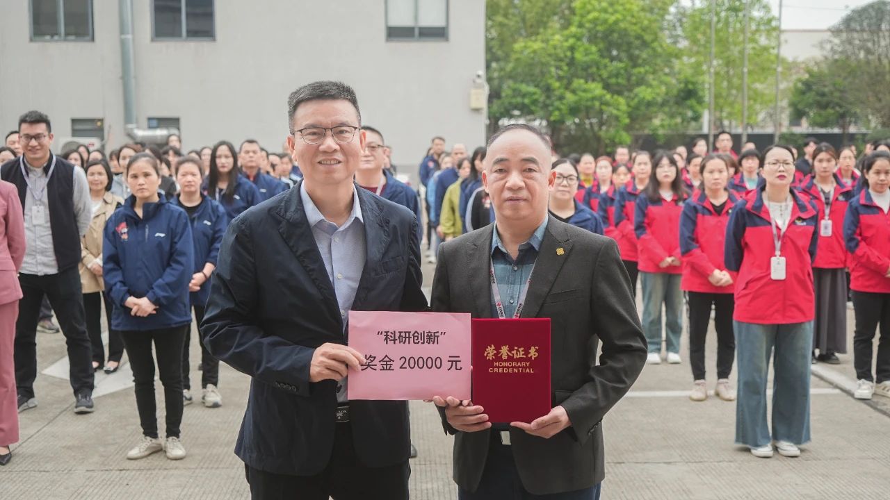 4月7日,和桂集團在周一集團晨會上舉行了科技創(chuàng)新表彰儀式,在全體員工的共同見證下,集團董事長黃偉文為集團副總裁楊天云頒發(fā)創(chuàng)新榮譽證書及獎金,表彰其團隊在科研中作出的突出貢獻。
